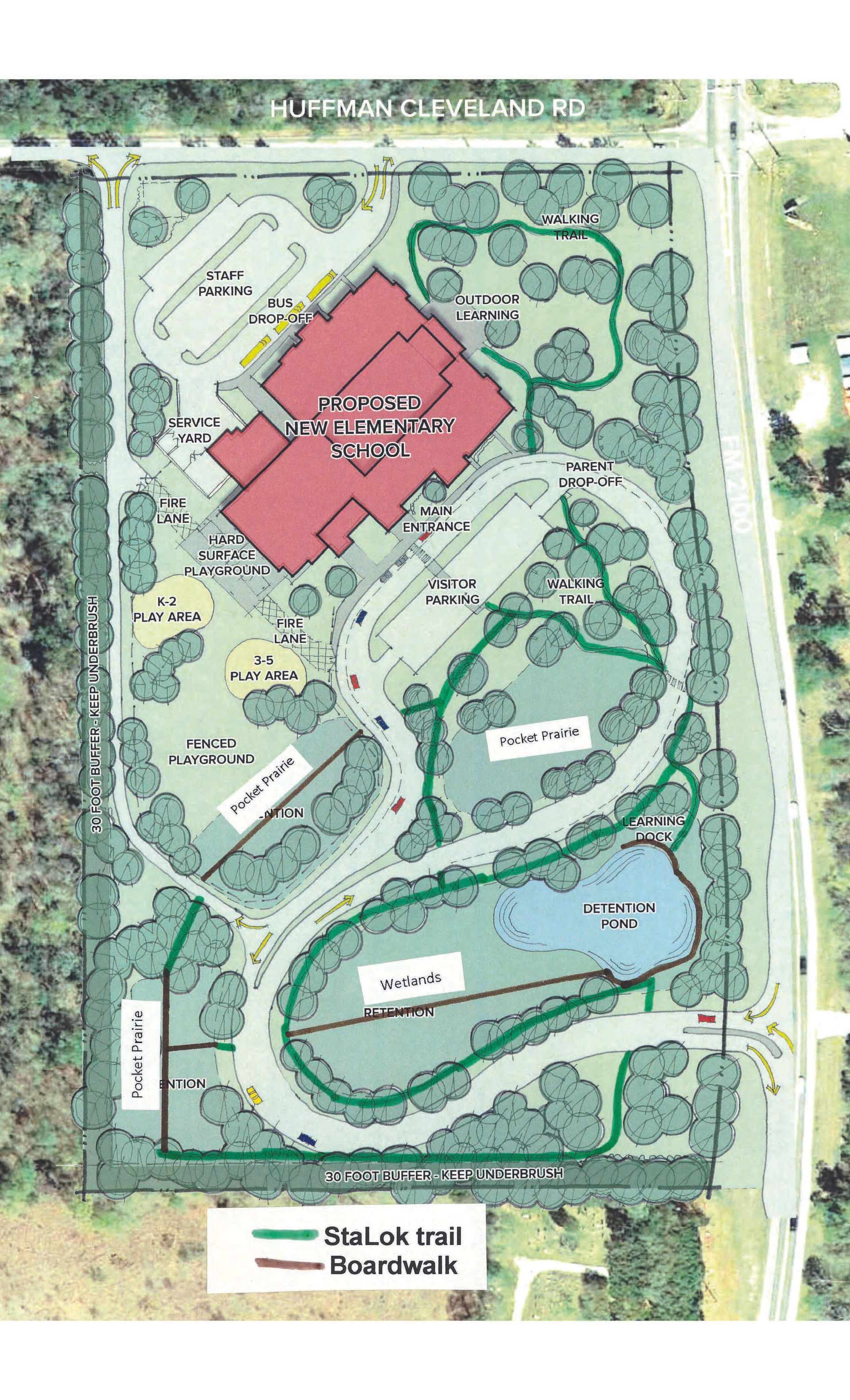 Students at Falcon Ridge Elementary, and eventually other schools in Huffman ISD, will have the opportunity to engage in hands-on learning that connects curriculum with the environment. Science lessons will come alive through water quality testing, habitat observation, and wildlife studies. Agricultural education will be enriched by connecting animal and plant ecosystems to broader concepts of sustainability and conservation.